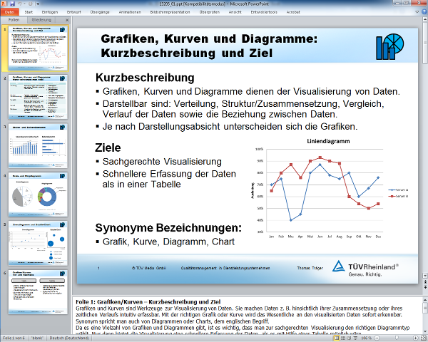 Mit dem Einsatz von Grafiken, Kurven und Diagrammen wird das Ziel einer sachgerechten Visualisierung verfolgt. Dieses Ziel wird durch folgende Konkretisierungen erreicht: