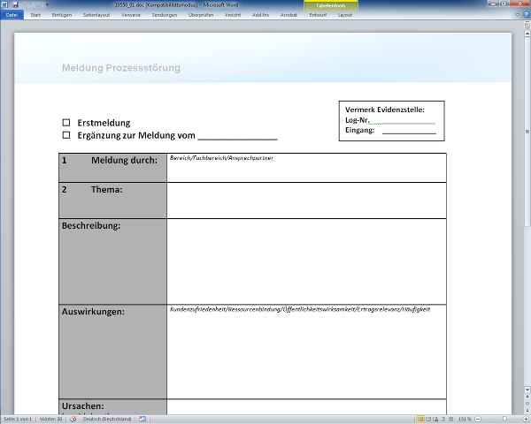 Zunächst werden im Beitrag die Anforderungen, Begriffe und Erfolgsfaktoren im Prozessstörungsmanagement benannt und erläutert. Es wird gezeigt, wie Sie geeignete Rahmenbedingungen schaffen. Der Managementprozess wird im Überblick dargestellt, die Rollen und Verantwortlichkeiten werden benannt. Beispielhaft wird gezeigt, wie ein entsprechendes Reporting aussehen kann oder wie die Eskalation und die Entscheidungssteuerung funktionieren. Nicht zuletzt werden Probleme und Stolpersteine, Transfermöglichkeiten auf andere Bereiche aufgezeigt. Arbeitshilfen: von: |