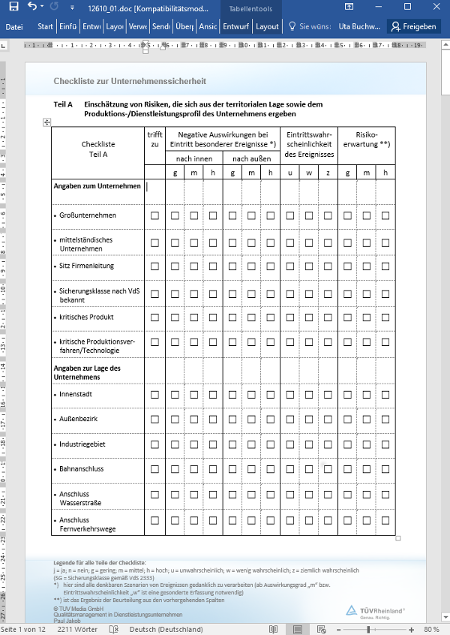 12610 Risikoanalyse „Unternehmenssicherheit” – Präventives Instrument des Qualitätsmanagements