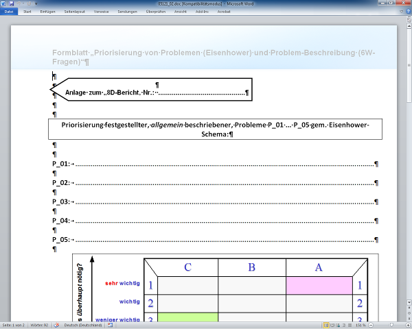 Im ersten Beitrag (s. Kap. 05120) wurden die Grundstrukturen des maßgeschneiderten KMU-spezifischen QM-Systems und seiner Dokumentation behandelt. In diesem Teil wird der Übergang der firmenspezifischen P3Ww-Tabelle zum QM-Handbuch (QMH) und den beschriebenen Verfahren behandelt.