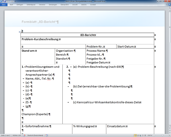 Hinzugewonnene Wissens- und Erfahrungsanteile (Wissensmanagement), z. B. über eine Vielzahl von dokumentierten „8D”-Vorhaben. Dazu kommen Informationen von Kunden, Qualitätszirkeln, umgesetzter Verbesserungsvorschläge u. v. m.
