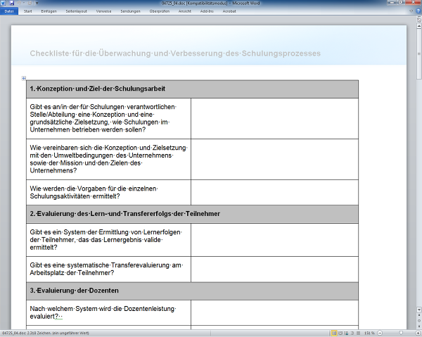 Die Norm ISO 10015 „Qualitymanagement – Guidelines for training” befasst sich mit Schulungen im Unternehmen. Dieses Thema ist auch für den Qualitätsmanager von großer Bedeutung, da sowohl in der ISO 9001 (Normabschnitt 7.1) als auch in der ISO 9004 (Normabschnitte 6.3 und 9.4) sowie im EFQM-Modell für Excellence Anforderungen zur Schulung von Mitarbeitern formuliert sind.
