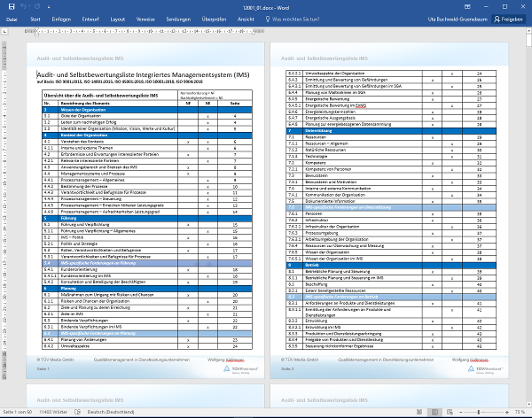 Die folgenden Ausführungen beruhen auf den Grundsätzen der ISO 9004 und der ISO 19011 und stellen Ihnen Möglichkeiten vor für eine neue Gestaltung des Auditprozesses zur Durchführung von integrierten Systemaudits unter der Maßgabe einer messbaren nachhaltigen Unternehmensentwicklung. Wir unterstützen Sie dabei mit Arbeitshilfen in Form eines Selbstbewertungskatalogs und weiteren notwendigen dokumentierten Informationen.
