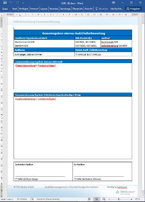 Die Integration beider Ansätze bietet Ihnen die Möglichkeit zur Durchführung von integrierten Systemaudits unter der Maßgabe einer messbaren nachhaltigen Unternehmensentwicklung. Wir unterstützen Sie dabei mit Arbeitshilfen in Form eines umfangreichen Selbstbewertungskatalogs sowie weiteren notwendigen dokumentierten Informationen. Arbeitshilfen: von: |