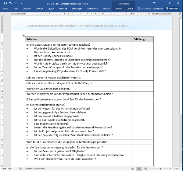 Seit mehr als 20 Jahren wird in Deutschland über die Einführung und Effektivität von Total-Quality-Management-Systemen nach Lean Six Sigma berichtet.